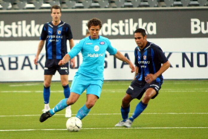Freddy Dos Santos her i aksjon for Vålerenga mot Stabæk og Daniel Nannskog i 2009. Foto: Kjetil Ree, Wikimedia